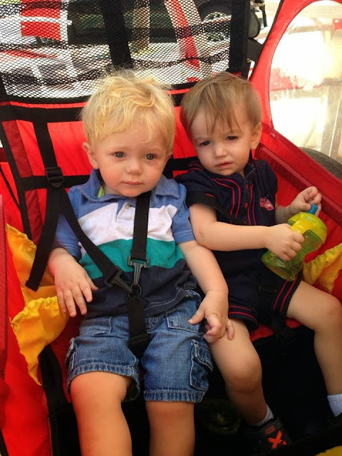 I have TWINS! Having fun at the mall. He kept peeking under the dressing room door that my friend Lynn was in, it was hilarious Apparently I'm too the point where I don't care about him crawling on the floor? Jeez, I used to be so paranoid That diapers commercial or what ever it is, is so true. By the second child I'm sure I'll be even more care free.
